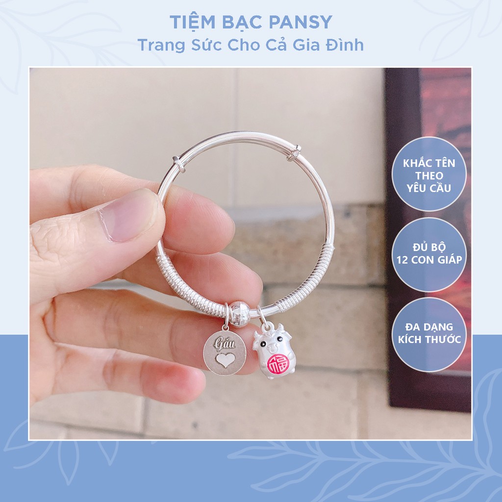 Vòng bạc cho bé khắc chữ kèm charm bạc - Điều chỉnh được kích cỡ từ sơ sinh đến 3 tuổi đeo tay, chân bé free ship